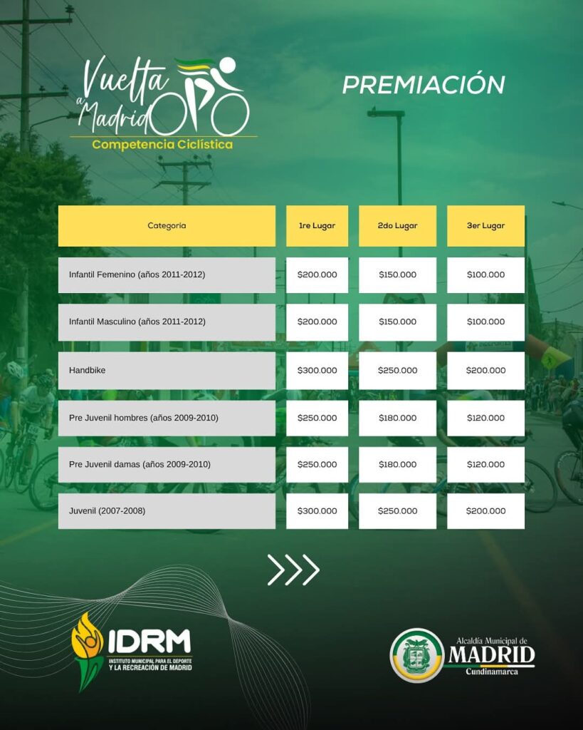 - Prejuvenil: 🥇$100.000 | 🥈$120.000 | 🥉$90.000
