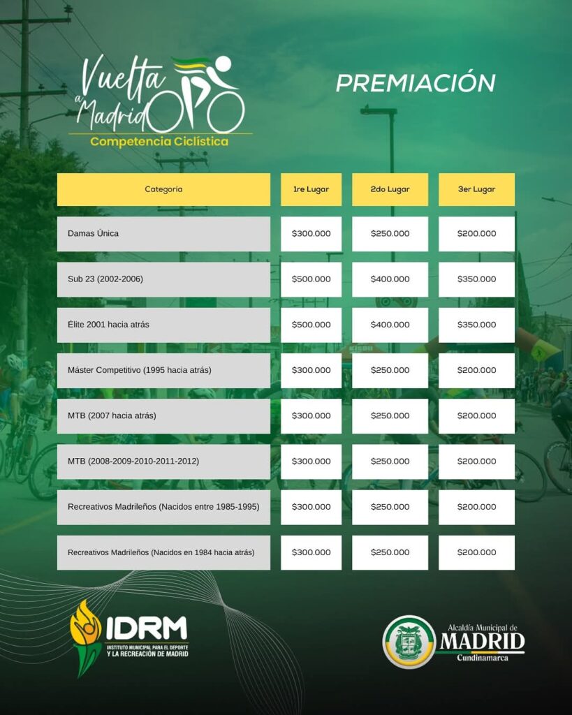 - Juvenil / Master A / Master B / Única Femenina: 🥇$300.000 | 🥈$200.000 | 🥉$100.000